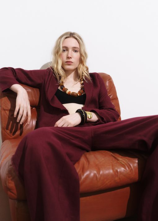 Be the first to review “MANGO Linen suit blazer with frayed ends Wine | Womens Blazers” Cancel reply