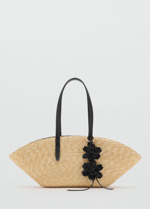MANGO Natural fiber basket with flower charm Beige | Womens Bags