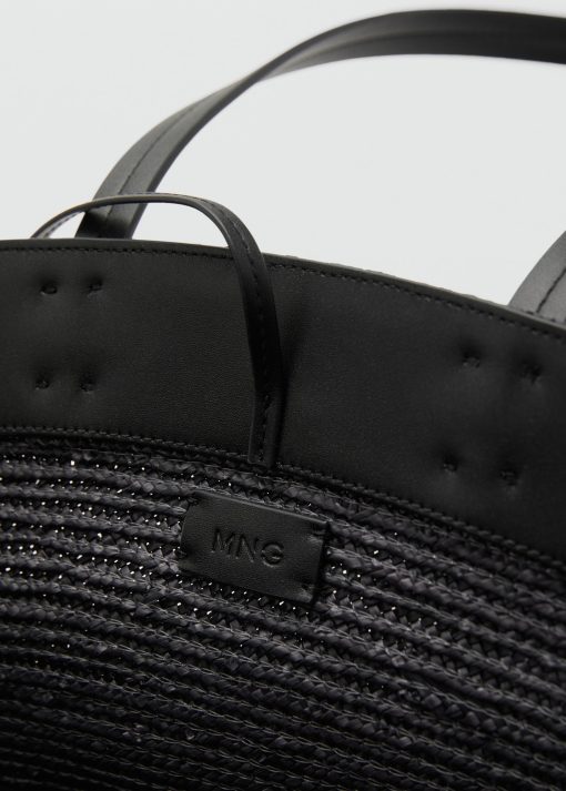 MANGO Natural fiber basket with flower charm Black | Womens Bags