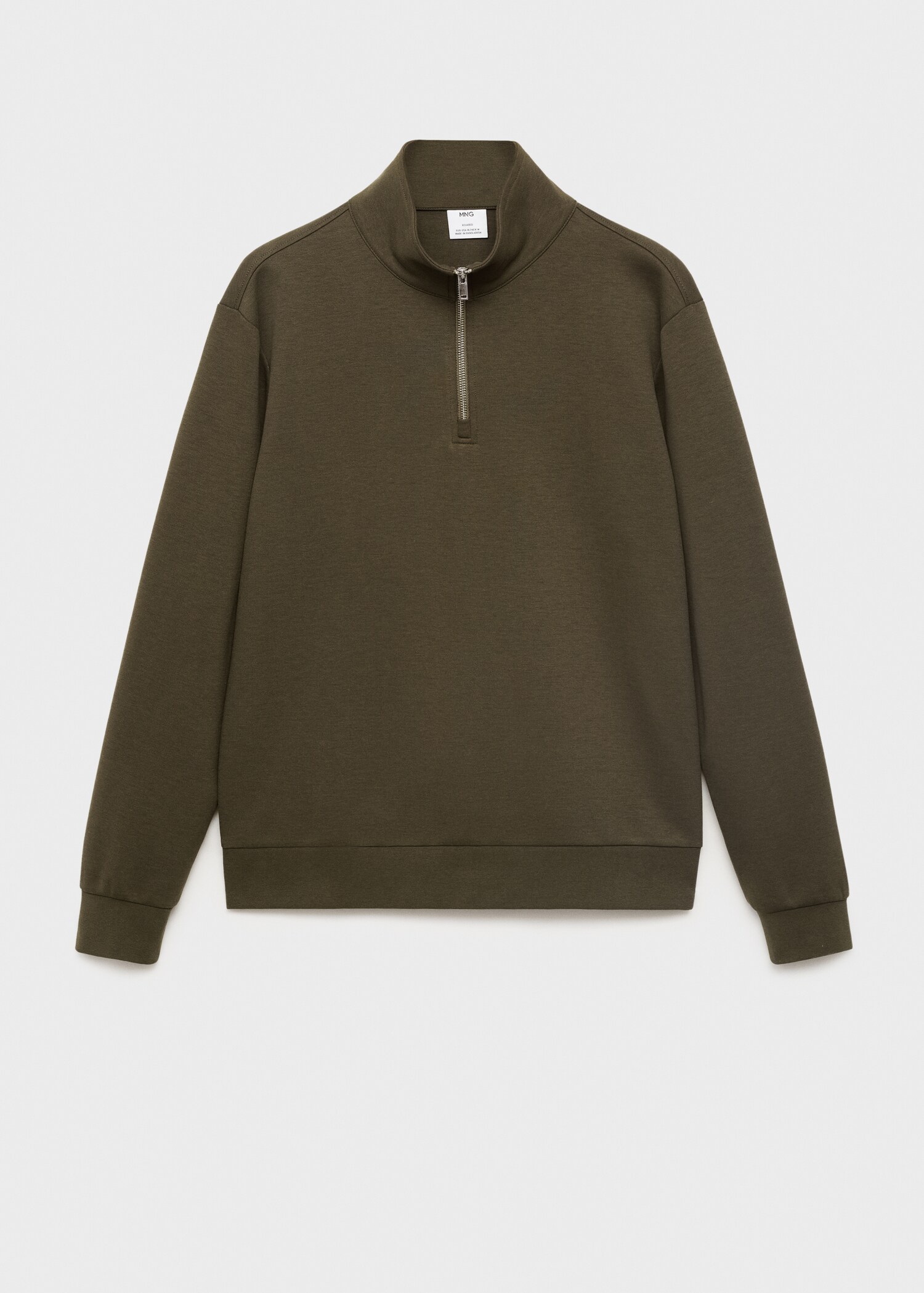 MANGO Regular-fit cotton sweatshirt with zipper Olive Green | Mens Sweatshirts