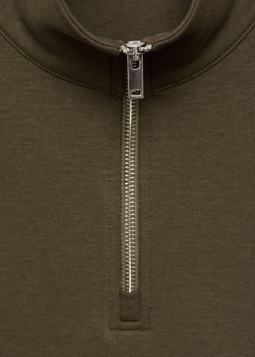 MANGO Regular-fit cotton sweatshirt with zipper Olive Green | Mens Sweatshirts