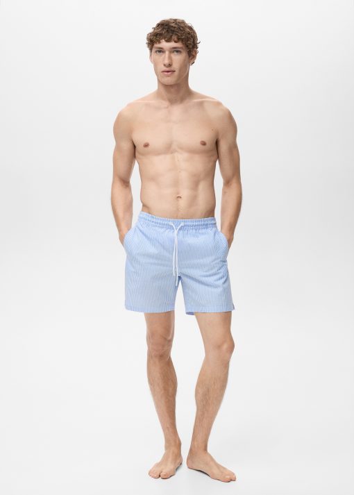 MANGO Seersucker swimming trunks Sky Blue | Mens Swimwear