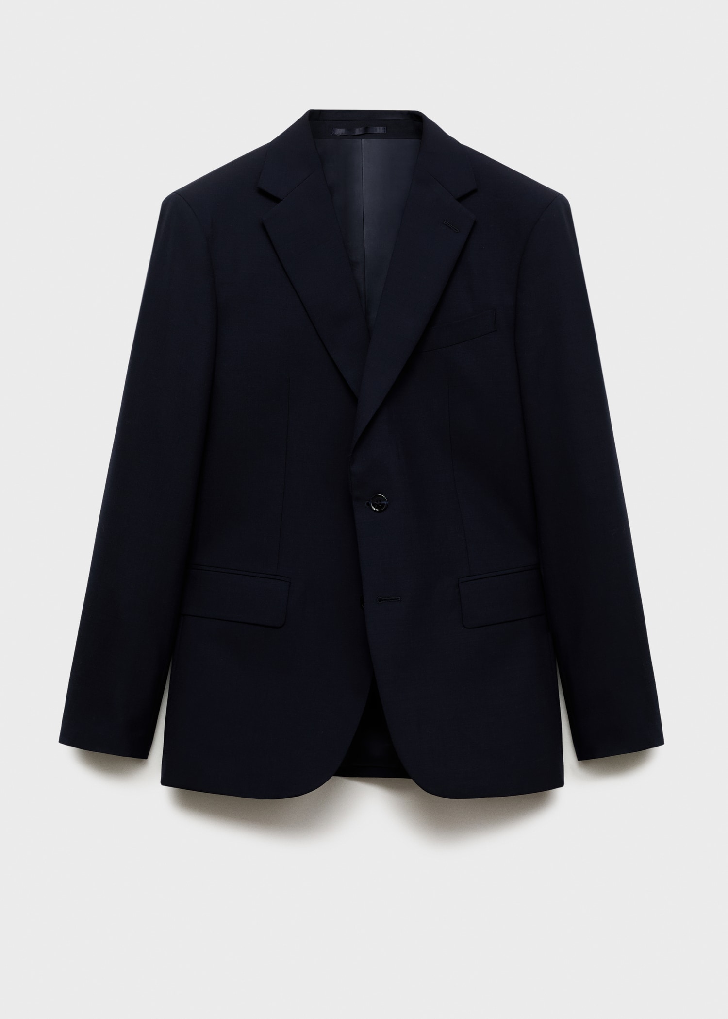 Description100% wool. Slim fit. Notched lapel collar. Inner lining. Double button fastening. Buttoned cuffs. Two side flap welt pockets. One welt pocket on the chest. The model is 185 cm tall and wears a size M.ESSENTIALS: Made to last. We have strengthened our quality standards by adding new endurance tests to our garments. Designed with careful consideration of their construction, they are even more durable, versatile and timelessREF. 87080613