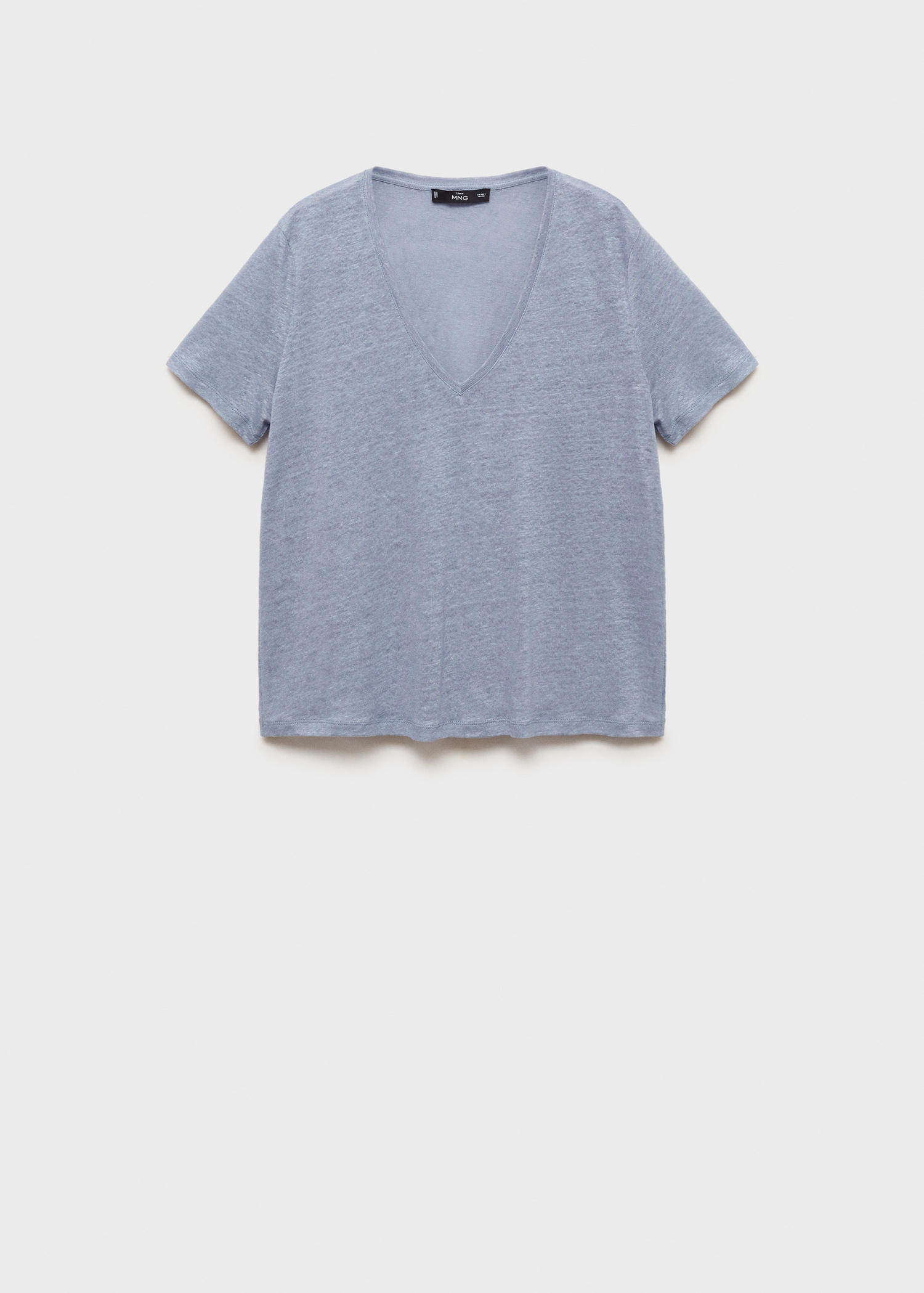 Be the first to review “MANGO V-neck linen t-shirt Sky Blue | Womens Tshirts” Cancel reply