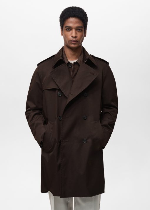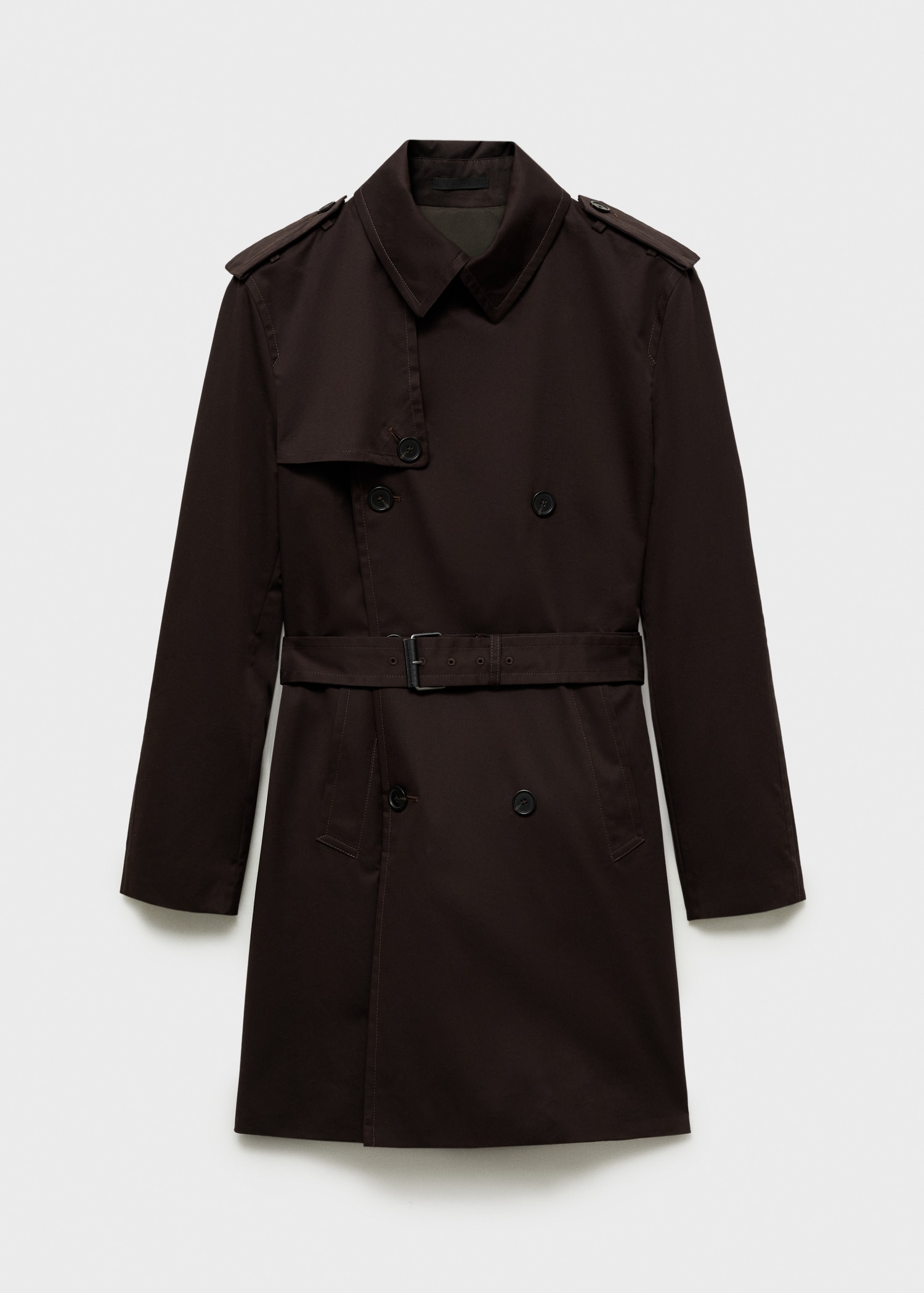 MANGO Water-repellent belted trench coat Chocolate | Mens Trench coats